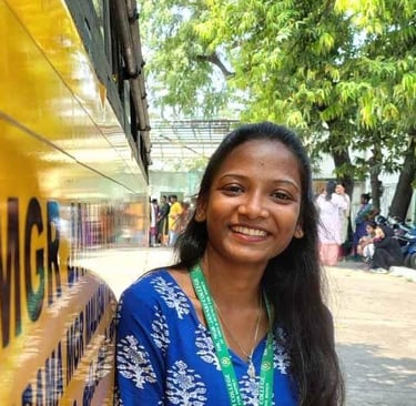 Newton trains our children in folk art, mainly Thudumbattam, bringing his rich experience as a professional theatre and folk performing artist since 2004. With a keen eye for identifying and nurturing talent, he has worked with both neurotypical and neurodiverse children, helping them develop their artistic expression. He has performed in over 1,000 street theatre shows. Beyond his expertise, Newton is a compassionate teacher who blends skill, patience, and encouragement to inspire every child he trains.